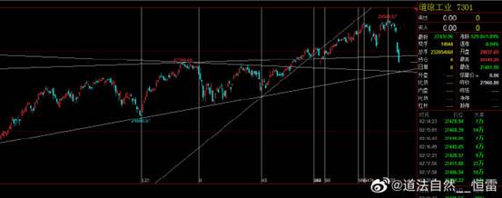 2020年2月12日道瓊斯指數(shù)歷史最高點29568.57到3月23日下跌至18218.65在短短的27個交易日內下跌了11349.82。我的微博里有具體的分析記錄。