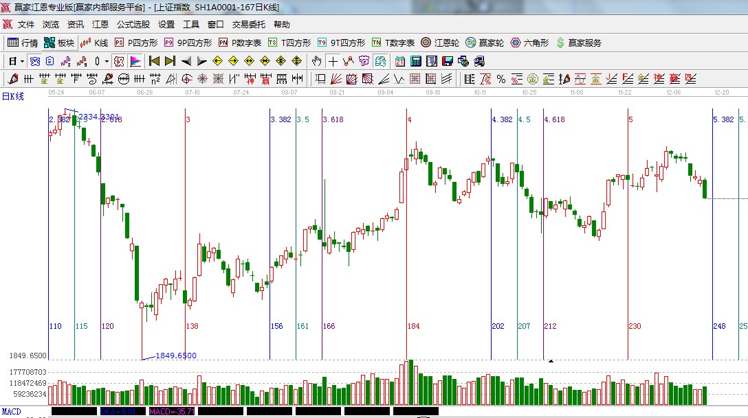 ★依據(jù)贏家江恩系統(tǒng)黃金時間周期線提示:17號為黃金分割的0.382的位置,重點觀察日線k線形態(tài);
