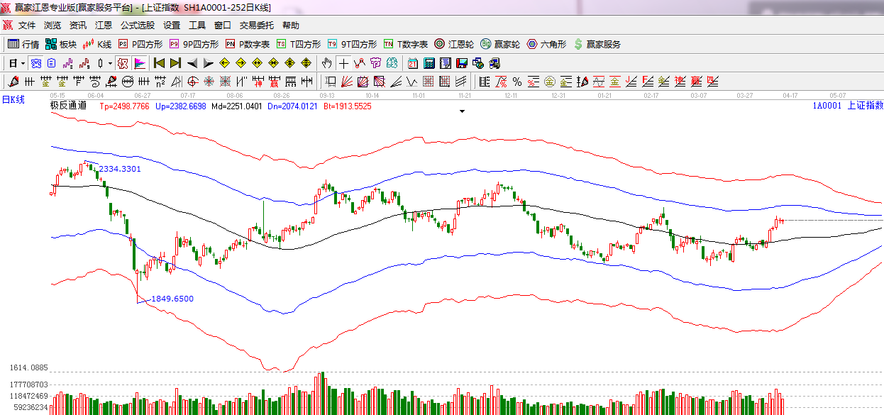 ★依據(jù)贏家江恩系統(tǒng)乾坤K線提示: 紅色可操作區(qū)域,出局線之上,短期看多。
