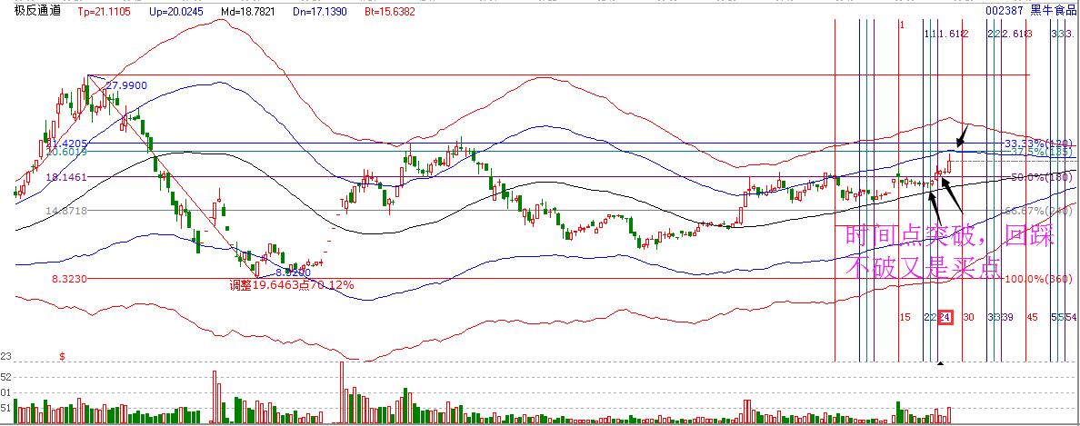 ? 上證指數(shù)經(jīng)過一波上漲,近期一直處于極反通道藍(lán)色線附近,并在此位置震蕩盤整,個股操作相對有些難度,因此,贏家建議投資者以極反通道生命線附近的股票為操作重點,并結(jié)合價格,時間工具來精確的把握買賣。接下來,筆者為大家解析近期所操作的黑牛食品,短期的高獲利讓我們再一次不得不認(rèn)真對待生命線附近的強勢股。