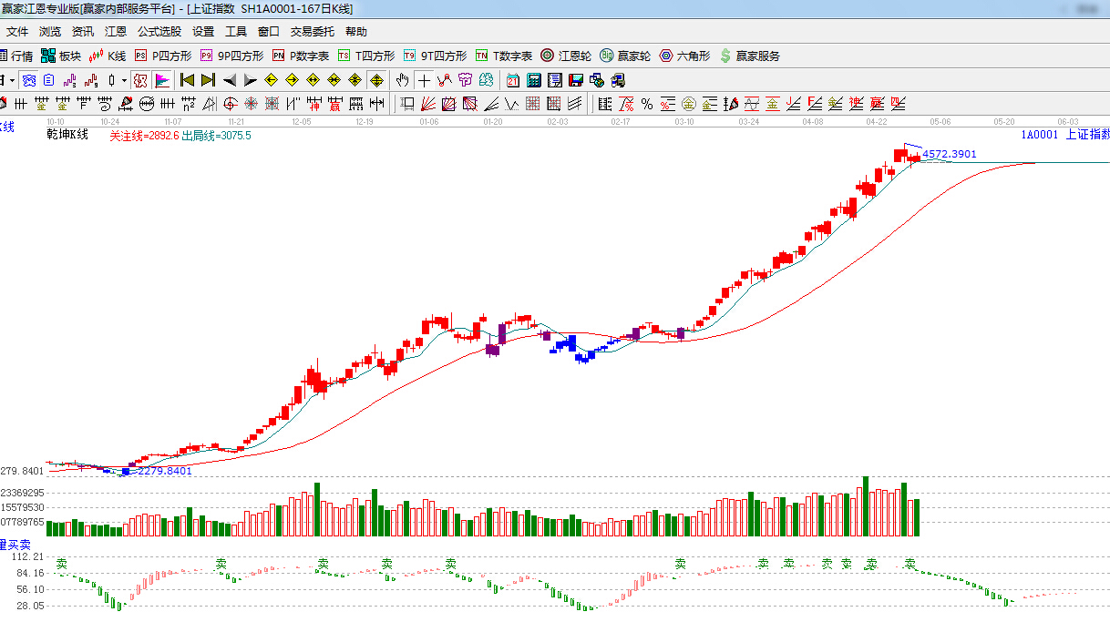 ☆依據(jù)贏家江恩理論系統(tǒng)能量買賣提示:有“賣”字出現(xiàn),指標(biāo)鈍化,謹(jǐn)慎看多。