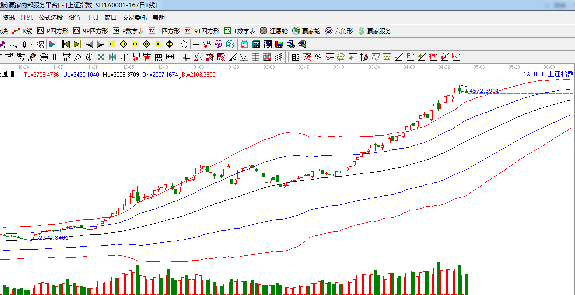 極反通道提示:紅色外軌超強區(qū)域,趨勢強勢,趨勢看多。