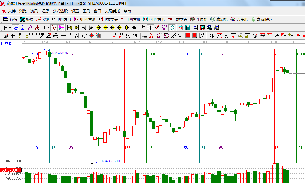 ★依據(jù)贏家江恩系統(tǒng)黃金時間周期線提示:下個日線時間點為19號;
