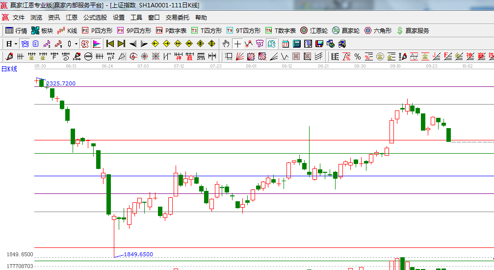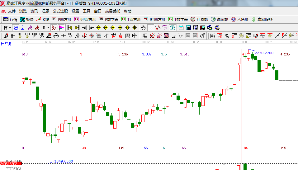 研究歷史預(yù)測(cè)未來(lái)是江恩理論代名詞,贏家江恩系統(tǒng)則是依據(jù)江恩理論的核心理論自然規(guī)律而研發(fā),一直以來(lái)直觀的通過(guò)工具理性的分析判斷指數(shù)、個(gè)股的走勢(shì),近期指數(shù)的走勢(shì)一步步的在安著分析預(yù)判的運(yùn)行,如昨天分析所談到60分鐘生命線2195的失守將展開(kāi)日線的正式調(diào)整,市場(chǎng)今天破位后出現(xiàn)快速下跌,這種格局要持續(xù)到節(jié)后的一周左右的時(shí)間里才會(huì)有所緩解,因此操作上放慢節(jié)奏,權(quán)重股的調(diào)整將指數(shù)帶動(dòng)下來(lái),為后期上攻拉空間,虧損過(guò)多的個(gè)股不需要出局,做出減倉(cāng)尋找機(jī)會(huì)補(bǔ)倉(cāng);假期前還有兩個(gè)交易日,假期效應(yīng)會(huì)再現(xiàn);