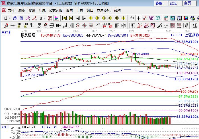 滬指上周五震蕩小漲,權(quán)重操控全天處于經(jīng)盤狀態(tài),深市幾大指數(shù)走勢(shì)相對(duì)強(qiáng)于滬指。板塊方面,地產(chǎn)、銀行領(lǐng)漲貢獻(xiàn)最大,周四表現(xiàn)的白馬股保險(xiǎn)、釀酒等領(lǐng)跌;題材方面,芯片、蘋果、維生素概念領(lǐng)漲,次新、高送轉(zhuǎn)概念較弱,個(gè)股上漲居多但分化依然嚴(yán)重,成交量較前日萎縮。技術(shù)方面,滬指17年收官K線走勢(shì)不錯(cuò),周、月K線都在極反通道生命線上,日線維持在江恩百分比225度與270度3272點(diǎn)、3320區(qū)間震蕩,短周期15、30、60分鐘在生命線上附近運(yùn)行,15分鐘外軌線與百分比270度在同一位置,盤中上攻時(shí)注意此位置壓力,本周已然是周線的時(shí)間點(diǎn),向上重點(diǎn)看日線生命線,持股心態(tài)漲不喜跌不悲。上證50關(guān)注日線生命線2850點(diǎn)得失,創(chuàng)業(yè)板120度與135度構(gòu)造平臺(tái)。操作策略上波段4成倉(cāng)持股不動(dòng),3288、3272為日內(nèi)支撐,3308、3321為日內(nèi)壓力。僅供參考,不構(gòu)成任何投資建議。