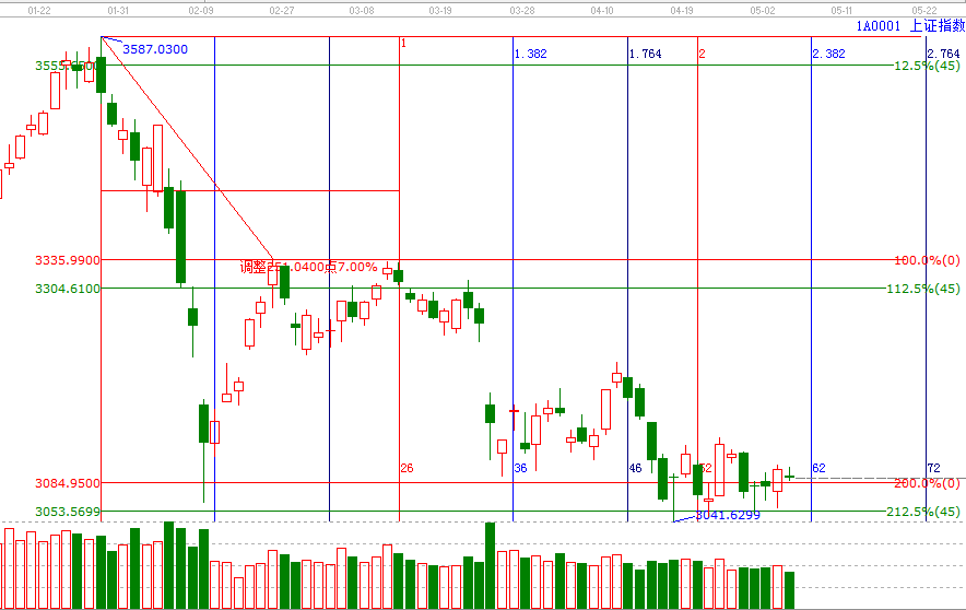 滬指日線突破下降趨勢線,圍繞江恩百分比零度位3097點(diǎn)震蕩,下周時間窗方向選擇需有量能配合,行情才有持續(xù)性和力度,當(dāng)前短周期在生命線附近震蕩,關(guān)注好市場動向,向上看高至45度3154點(diǎn),下方315度3040點(diǎn)支撐不破繼續(xù)做平臺