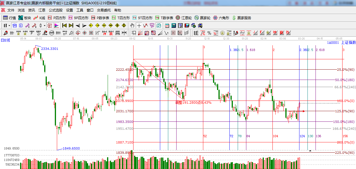☆依據(jù)贏家江恩系統(tǒng)黃金時(shí)間周期線提示:24號(hào)時(shí)間之窗突破站上生命線,上方強(qiáng)阻力2078點(diǎn),留意后期量能變化。