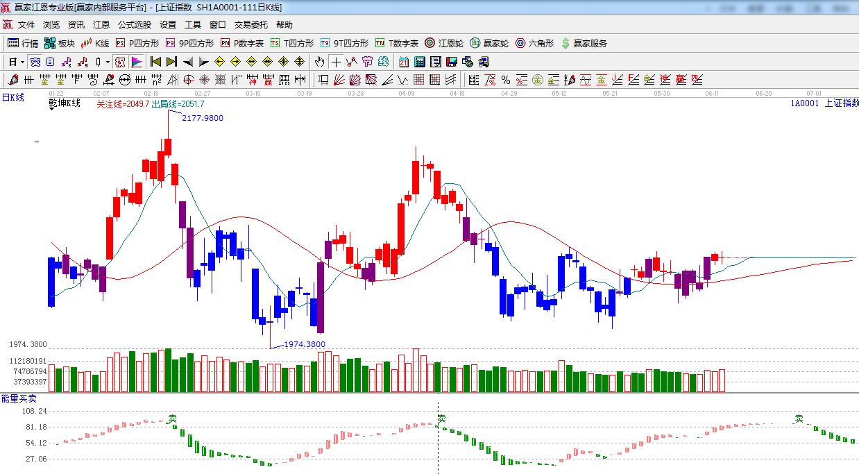 ☆依據(jù)贏家江恩系統(tǒng)黃金時間周期線提示:6.10日時間之窗,指數(shù)放量突破生命線,圍繞生命線做整理,短線下一時間窗口是6月16日。